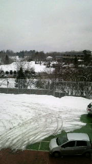こちらがその写真。なんと、ホテルの駐車場です(笑)。どうせなら雪山の写真にしろってカンジですが、とにかく雪を見れたことにテンションが上がってしまい、何も考えずに一番最初に撮った一枚です。関西じゃあなかなか雪を見られないので、やっぱり目の前にすると嬉しいですね~。